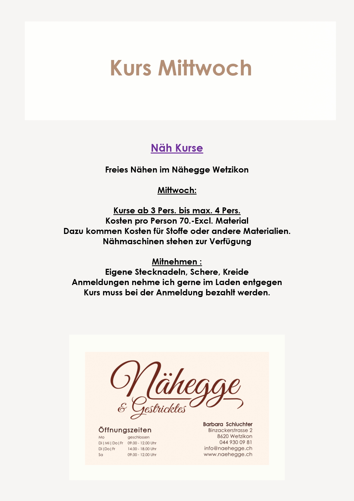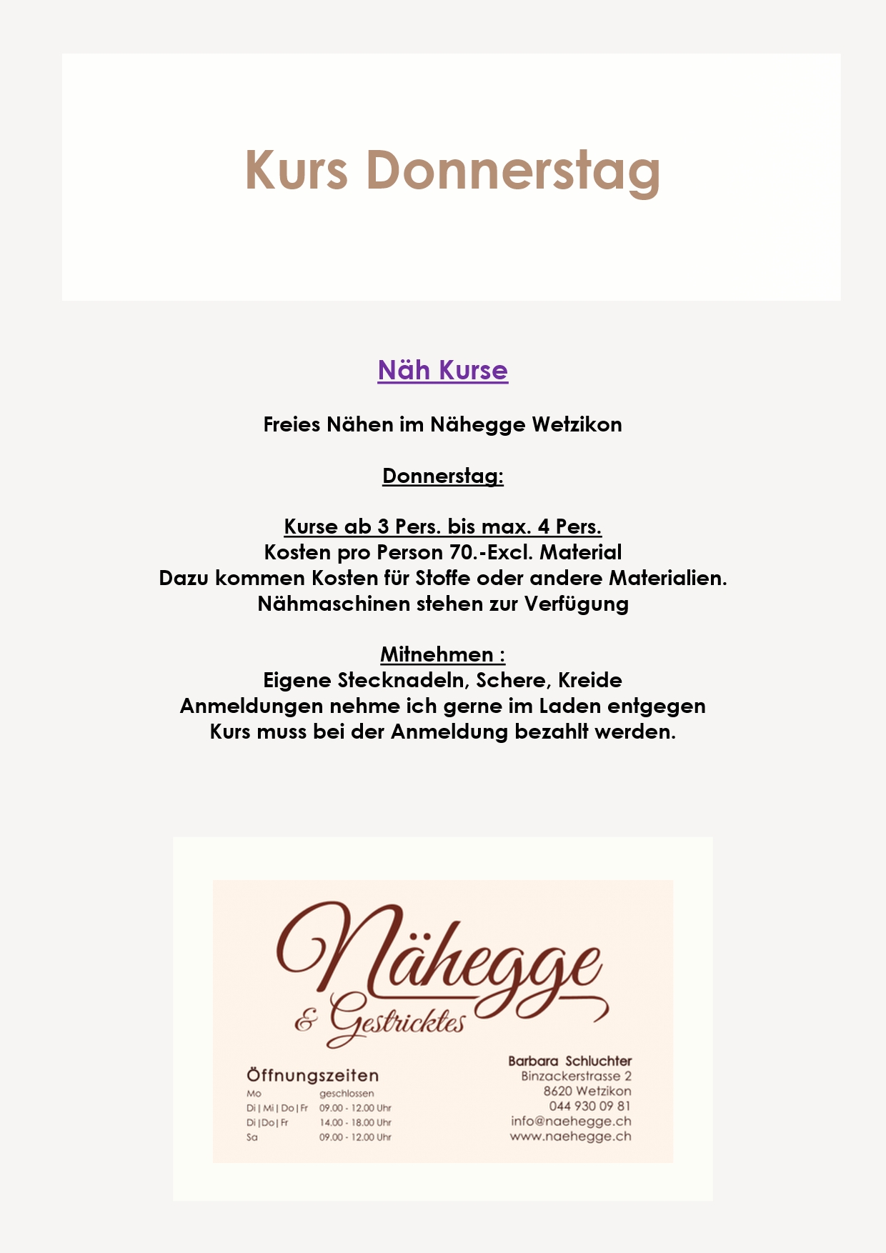 Ihr Nähatelier in der nähe von: Wetzikon/Hinwil/Grüt/Gossau Mönchaltorf/Uster/Auslikon/ Bäretswil