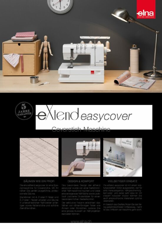 Unsere easycover arbeitet präzise und meistert alle Stoffarten mit Leichtigkeit, sowohl feine und elastische Materialien wie auch dicke, schwere Qualitäten. Ihr Motor näht besonders kraftvoll, zuverlässig und leise. Freuen Sie sich über das trendige Design, höchste Qualität und Benutzerfreundlichkeit und geben Sie Ihren Kreationen einen perfekten Look!