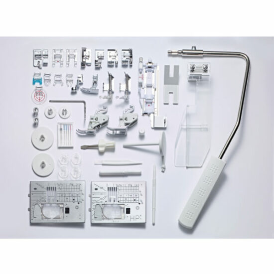 - Im Standardzubehör sind sowohl spezielle Nähfüße für das Freihandquilten mit einstellbarer Fußhöhe und ein Ruler-Fuß enthalten