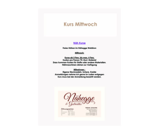 Anmeldungen nehme ich gerne im Laden entgegen
